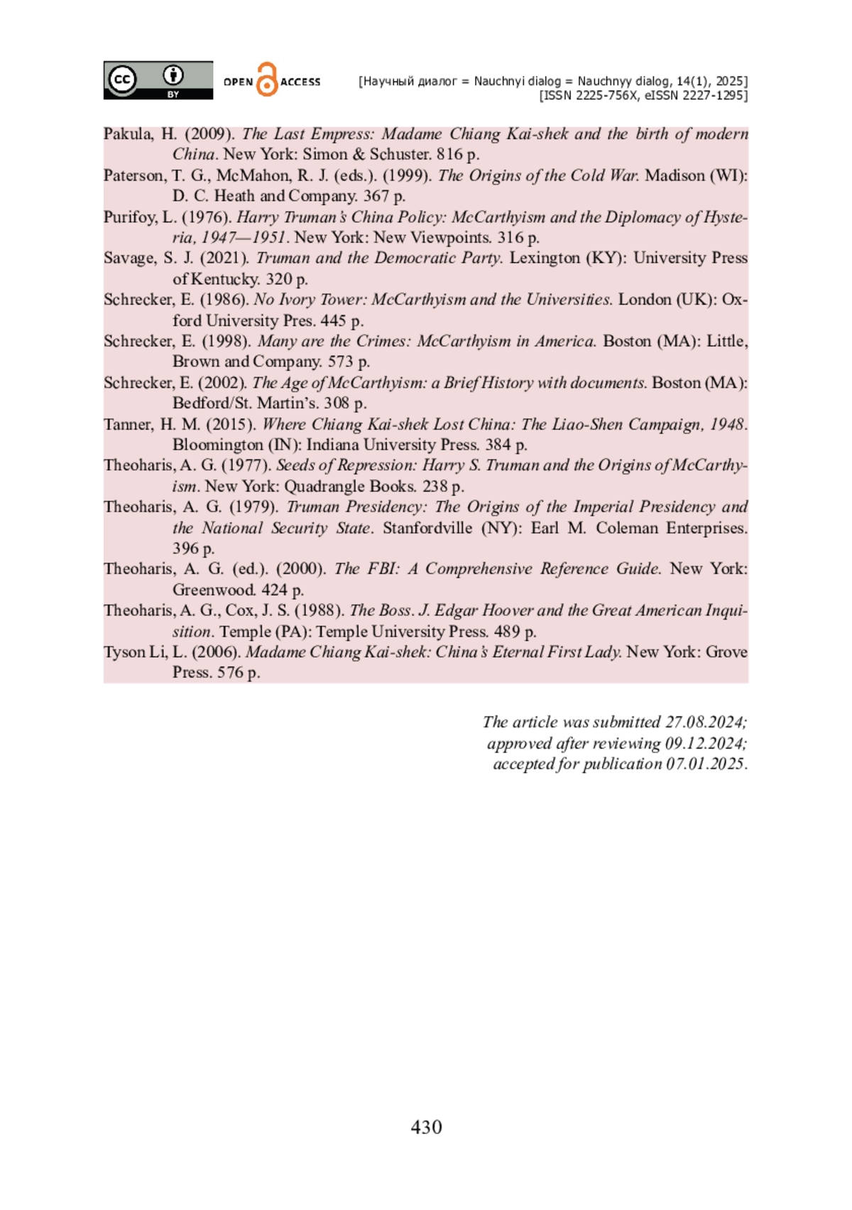 24. Purifoy L. Harry Truman’s China Policy : McCarthyism and the Diplomacy of Hysteria, 1947-1951 / L. Purifoy. - New York : New Viewpoints, 1976. - 316 р.