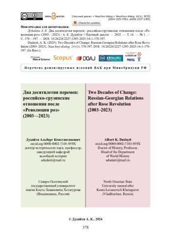 32. Сихарулидзе А. Т. Россия как фактор внутренней политики Грузии / А. Т. Сихарулидзе // Центральная Евразия. - 2019. - № 1 (3). - С. 135-153.