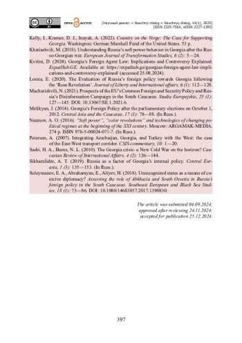 38. Lomia E. The Evaluation of Russia’s foreign policy towards Georgia following the ‘Rose Revolution’ / E. Lomia // Journal of Liberty and International affairs. - 2020. - Vol. 6. - № 1. - Pp. 112-128.