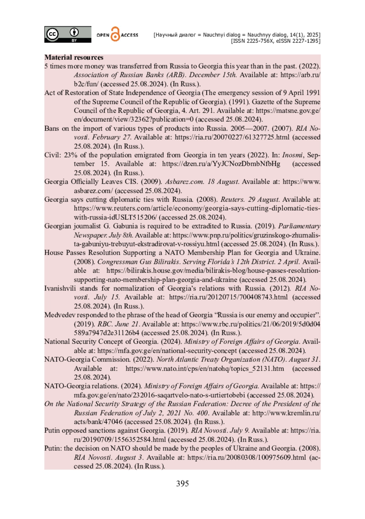 25. National Security Concept of Georgia [Electronic resource] // Ministry of Foreign Affairs of Georgia. - 2024. - Access mode : https://mfa.gov.ge/en/national-security-concept (accessed 25.08.2024).