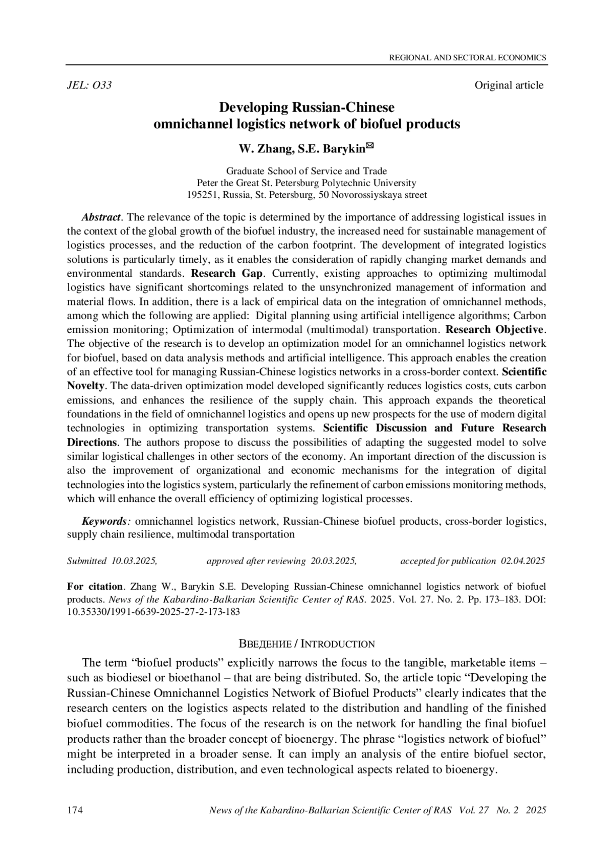 4. Barykin S.E., Sergeev S.M., Provotorov V.V., et al. Sustainability Analysis of Energy Resources Transport Based on A Digital ND Logistics Network. Engineered Science. 2024. Vol. 29. EDN: WCZBUO