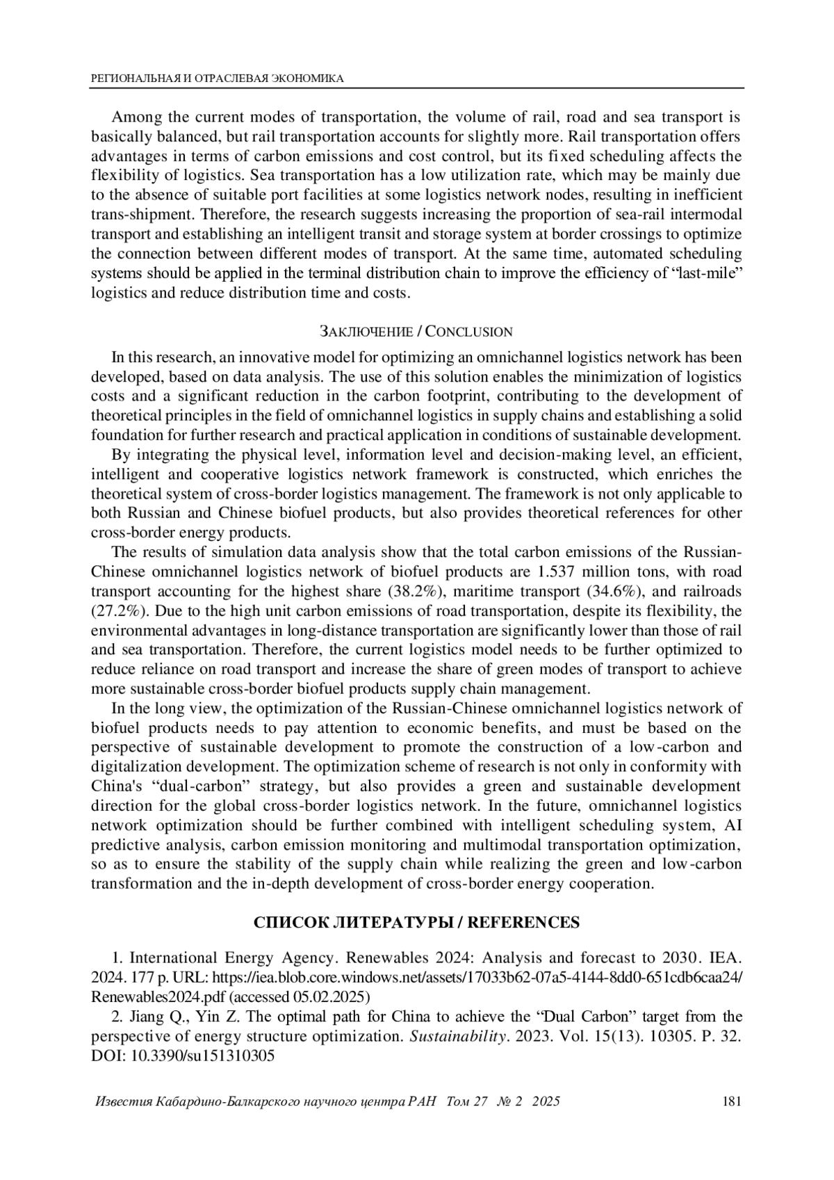 2. Jiang Q., Yin Z. The optimal path for China to achieve the “Dual Carbon” target from the perspective of energy structure optimization. Sustainability. 2023. Vol. 15(13). 10305. P. 32. DOI: 10.3390/su151310305 EDN: YEVXZX