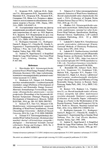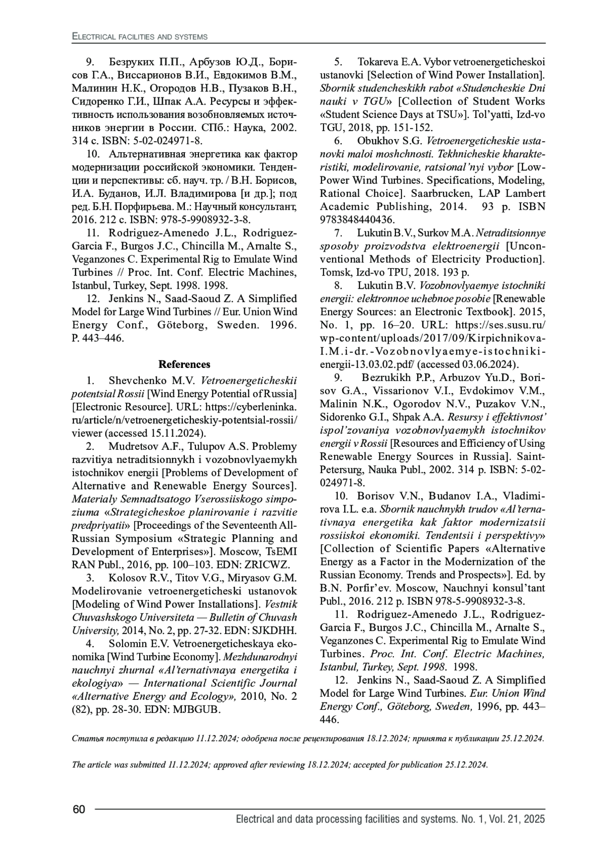 1. Шевченко М.В. Ветроэнергетический потенциал России [Электронный ресурс]. URL: https://cyberleninka.ru/article/n/vetroenergeticheskiy-potentsial-rossii/viewer (дата обращения: 15.11.2024).