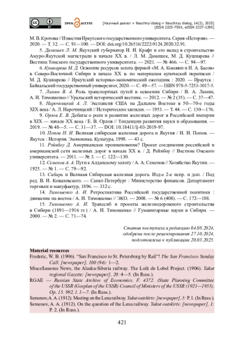 Статья: Проекты начала ХХ века по строительству транспортных магистралей к богатствам недр Якутии (2025)