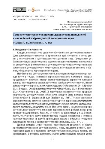 2. Абжапарова М. Д. Способы пополнения лексико-семантической группы цвета в разноструктурных языках / М. Д. Абжапарова // Вестник Новосибирского государственного университета. Серия : История, филология. - 2018. - Т. 17. - № 2. - C. 115-122. - https://doi.org/10.25205/1818-7919-2018-17-2-115-122.
