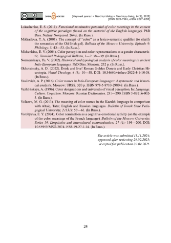 15. Норманская Ю. В. Историко-типологический анализ цветообозначений в древних индоевропейских языках : диссертация … кандидата филологических наук : 10.02.20 / Ю. В. Норманская. - Москва, 2002. - 252 с.