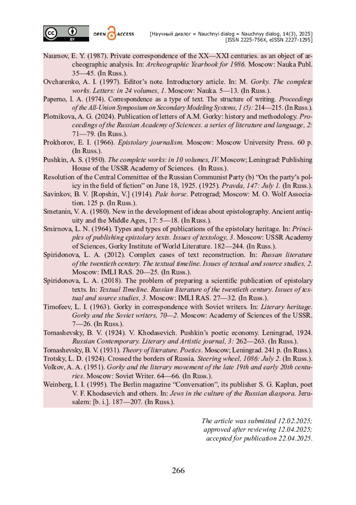 28. Плотникова А. Г. Издание писем А. М. Горького : история и методология / А. Г. Плотникова // Известия Российской академии наук. Серия литературы и языка. - 2024. - № 2 (март - апрель). - С. 71-79.