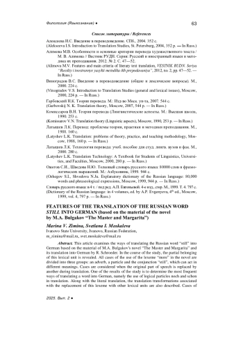 Статья: ОСОБЕННОСТИ ПЕРЕВОДА РУССКОГО СЛОВА ЕЩЁ НА НЕМЕЦКИЙ ЯЗЫК (НА МАТЕРИАЛЕ РОМАНА М. А. БУЛГАКОВА «МАСТЕР И МАРГАРИТА») (2025)