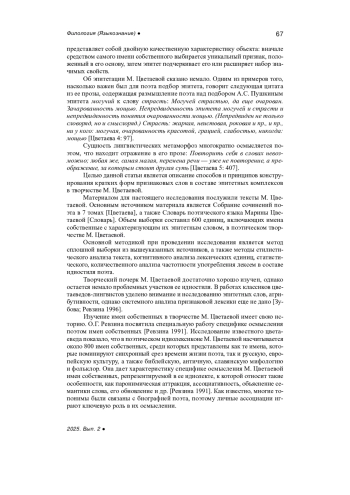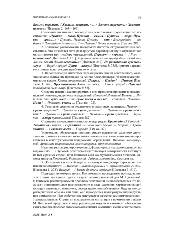 Статья: ЭПИТЕТАЦИЯ ИМЕНИ СОБСТВЕННОГО В ПОЭЗИИ М. ЦВЕТАЕВОЙ (2025)