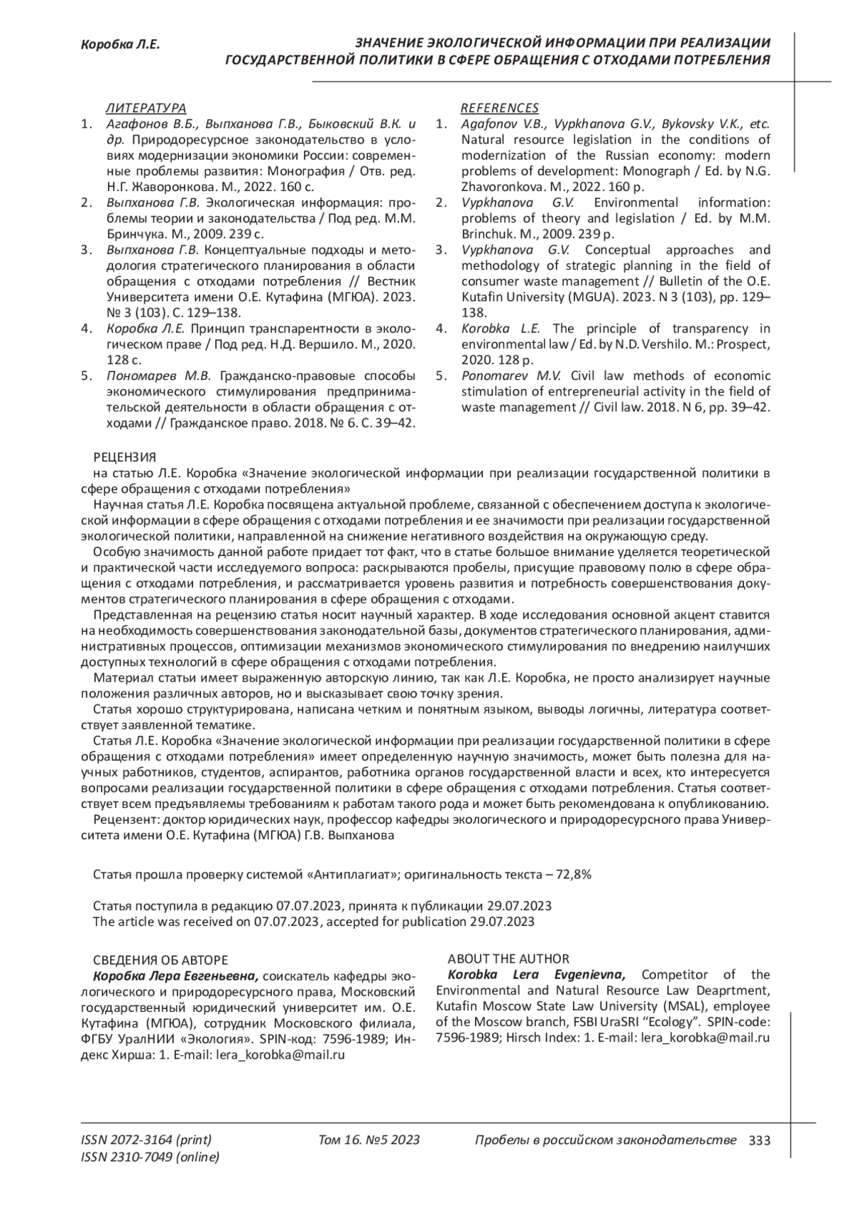 Vypkhanova G.V. Environmental information: problems of theory and legislation / Ed. by M.M. Brinchuk. M., 2009. 239 p.