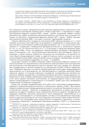 9. Марусин И. С. Договор о запрещении ядерного оружия 2017 года и перспективы его применения // Известия высших учебных заведений. Правоведение. 2018. № 1. С. 20-31. EDN: UYYMIQ