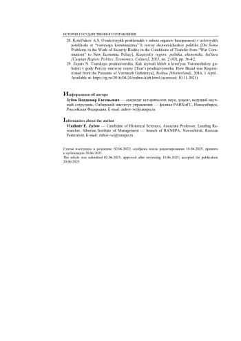 29. Заяц Н. Царская продразверстка. Как изымали хлеб у крестьян Воронежской губернии в годы Первой мировой войны // Родина. 2016. 1 апр. URL: https://rg.ru/2016/ 04/24/rodina-hleb.html (дата обращения: 10.11.2021).