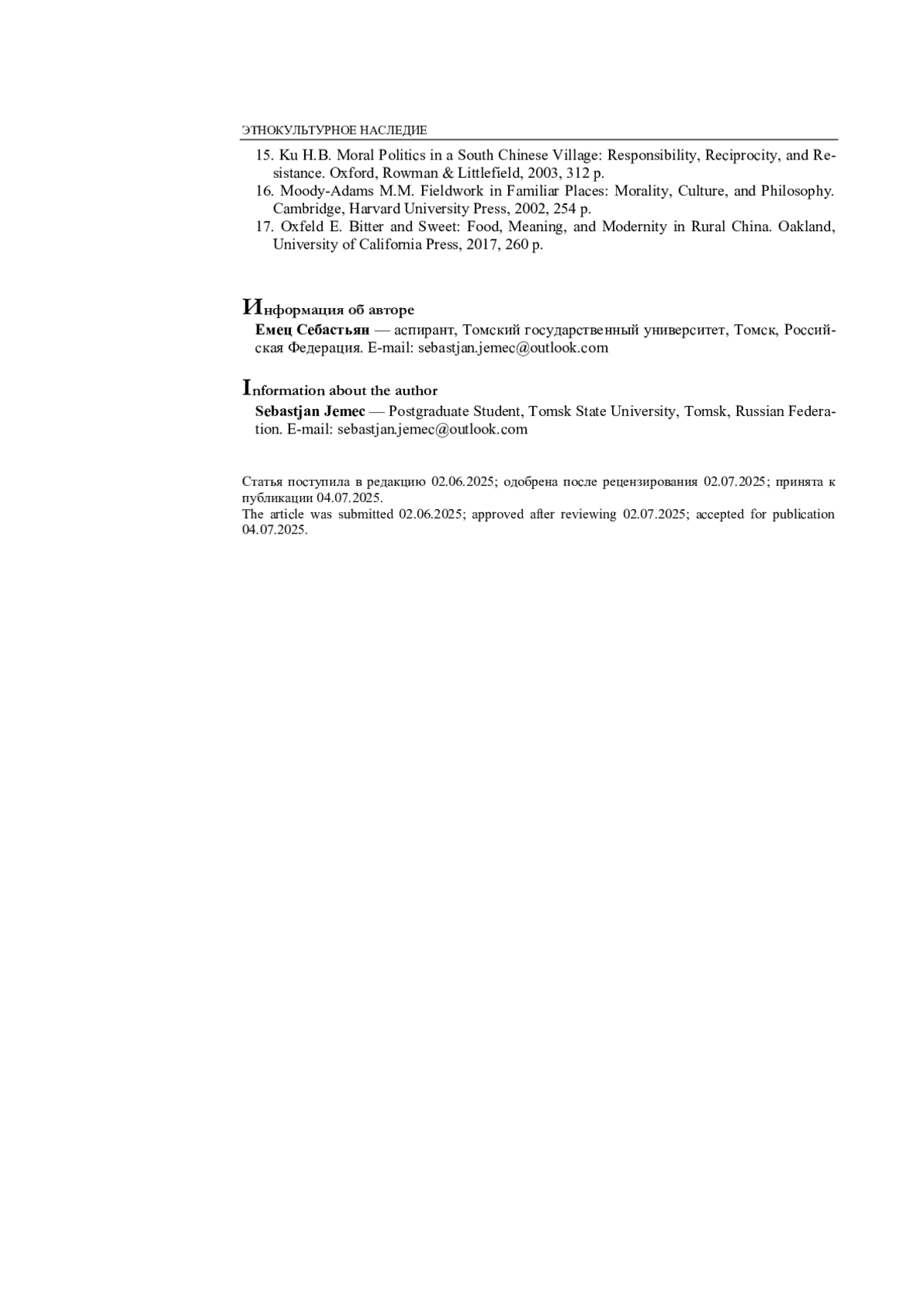 1. Jemec S. Sweet Return and Bitter Memories: Rethinking Coffee Culture and Overseas Return Migration from Europe to Rural Fujian, China // Journal of Chinese Overseas. 2023. N 19 (1). P. 57—88.