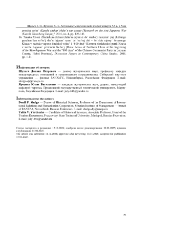 16. Танака Хитоси. Жичжун чжаньчжэн цяньци дэ хуабэй нунцунь юй чжунго гунчаньдан хэбэй шэн лайюань сянь дэ ба бай жи [田中仁. 日中战争前期的华北农村与中国共产党河北省涞源县的“800日“ // Discussion Papers in Contemporary China Studies. 2015. № 3] = Сельские районы Северного Китая в начале японо-китайской войны и “800 дней” Коммунистической партии Китая в уезде Лайюань провинции Хэбэй // Discussion Papers in Contemporary China Studies. 2015. С. 1-21.