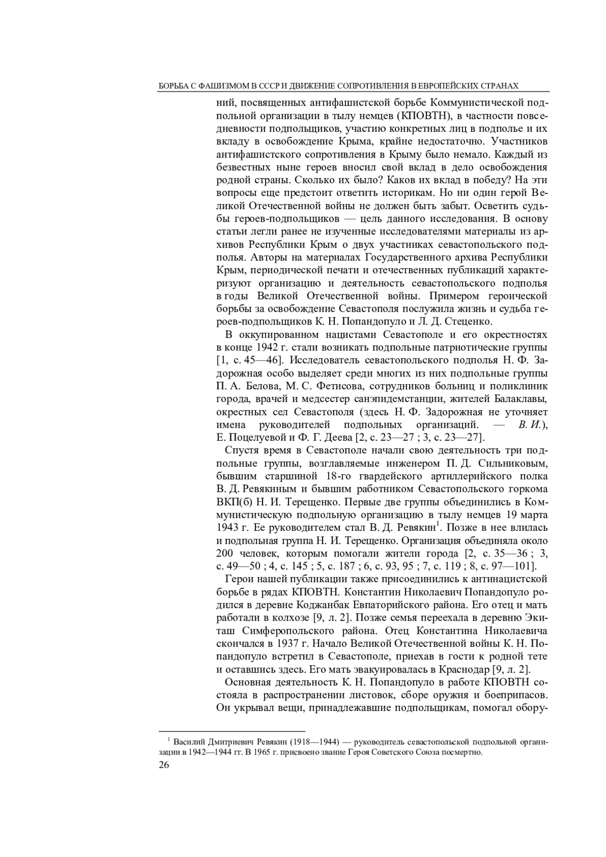 6. Сапранкова К. Г., Удод В. П. Их подвиги бессмертны. Из истории деятельности коммунистического подполья в Севастополе в 1942-1944 гг. // Вопросы истории КПСС. 1974. № 2. С. 91-98.