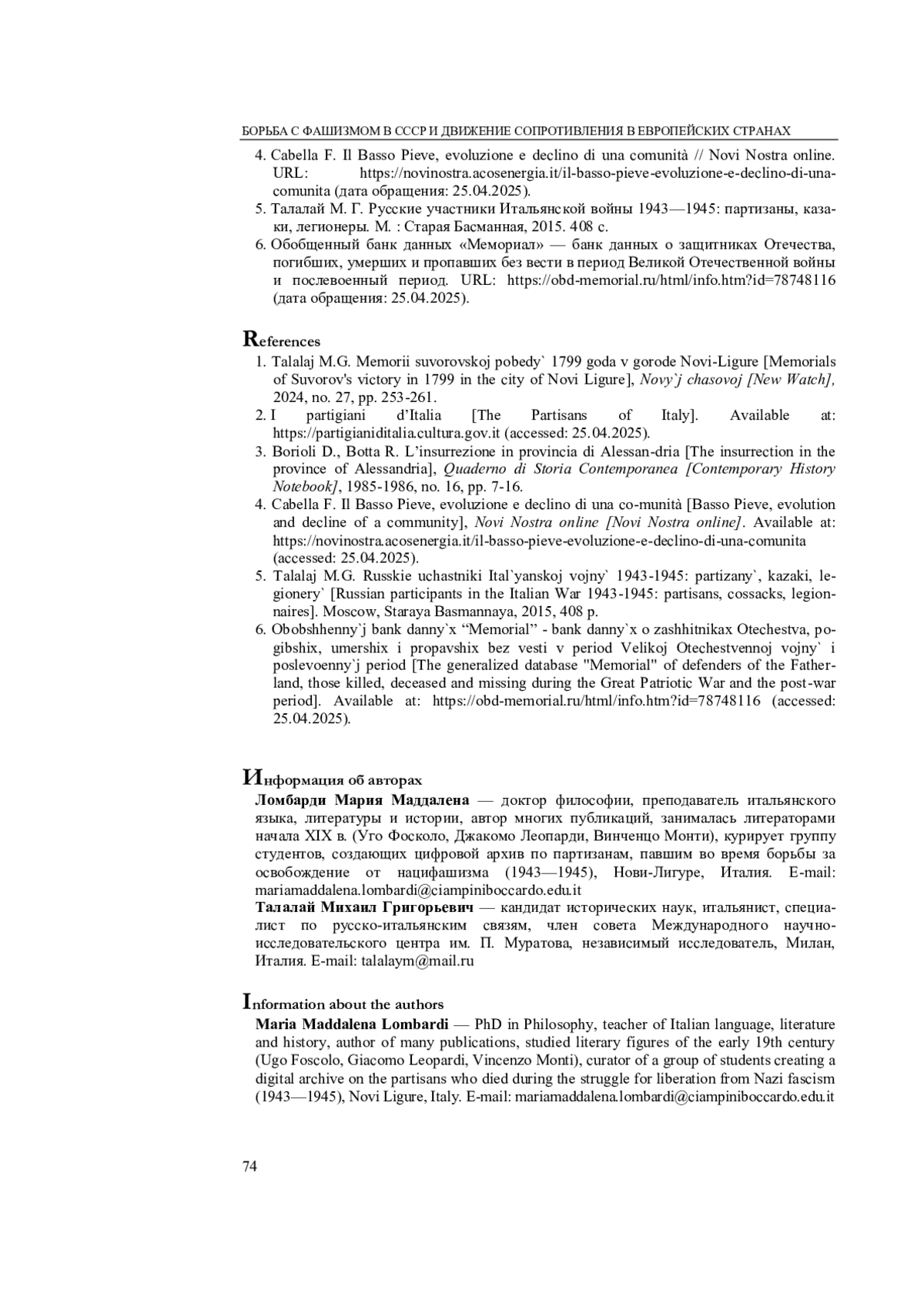 4. Cabella F. Il Basso Pieve, evoluzione e declino di una comunità // Novi Nostra online. URL: https://novinostra.acosenergia.it/il-basso-pieve-evoluzione-e-declino-di-unacomunita (дата обращения: 25.04.2025).