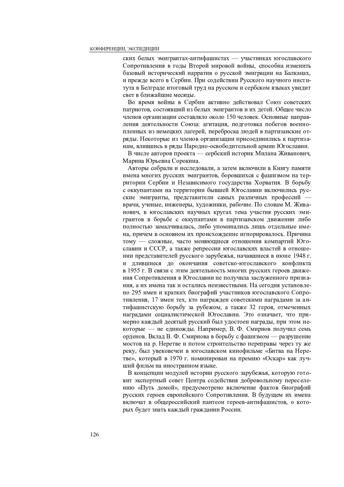 24—25 апреля 2025 г. в Москве в Доме русского зарубежья им. Солженицына проходила Международная научно-просветительская конференция «Русские герои европейского Сопротивления в годы Второй мировой войны 1939—1945 гг.». Конференция объединила историков, социологов, филологов, политологов, кинематографистов из России и многих европейских и азиатских стран. Это вторая после 2015 г. крупная международная конференция, лозунгом которой стал девиз «Никто не забыт! Ничто не забыто!»