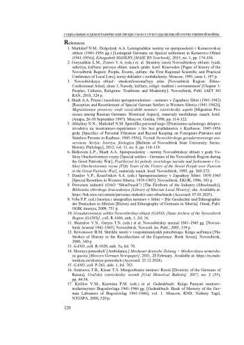 Ключевые фразы: депортация, советская повседневность, немцы-трудар-мейцы, сибсельмаш, новосибирская область, великая отечественная вой-на, социально-бытовые проблемы российских немцев
