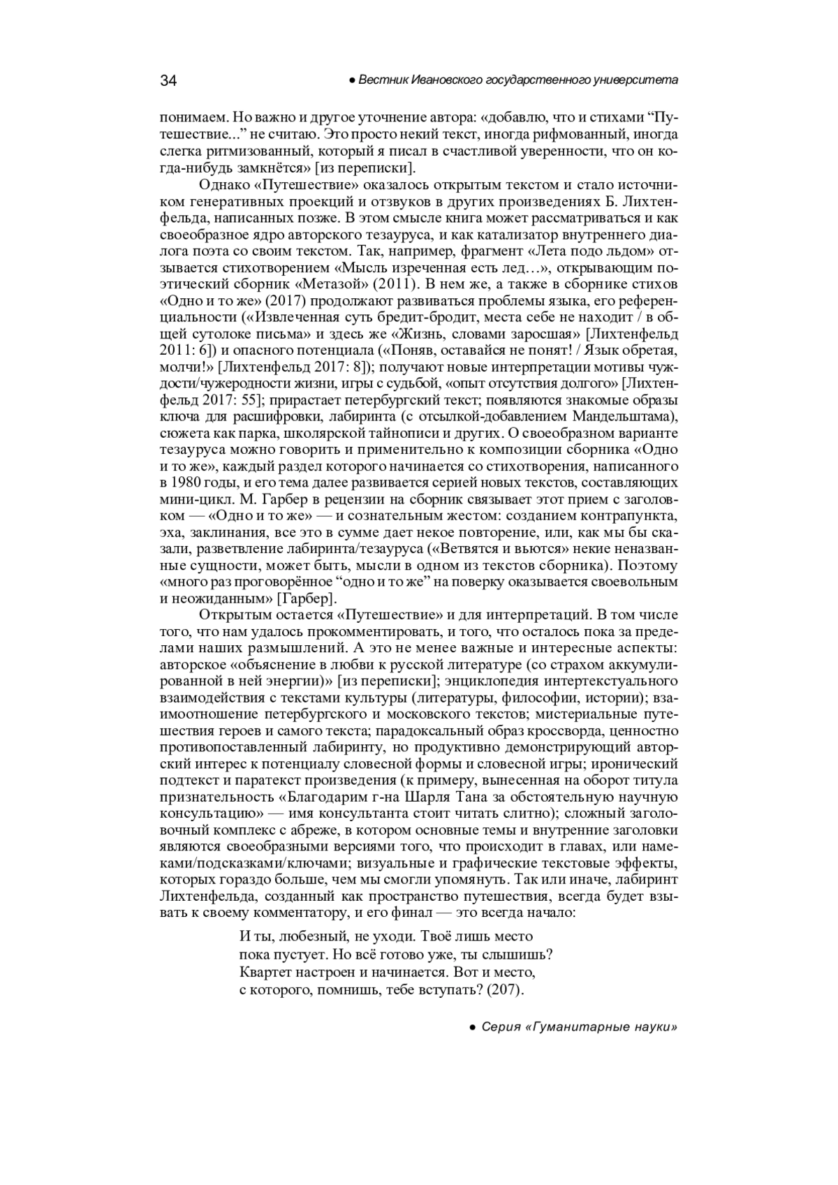 Garber M. Acquiring a language, keep silent. Review of the book: Lichtenfeld B. The same thing. Poems. St. Petersburg, 2017, 128 p., Emigrant lyre, 2018, no. 2 (22). - In Russ.