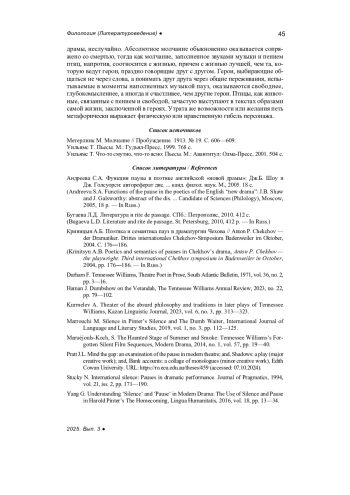 4. Андреева С.А. Функции паузы в поэтике английской “новой драмы”: Дж.Б. Шоу и Дж. Голсуорси: автореферат дис.. канд. филол. наук. М., 2005. 18 с. EDN: ZNBUVJ