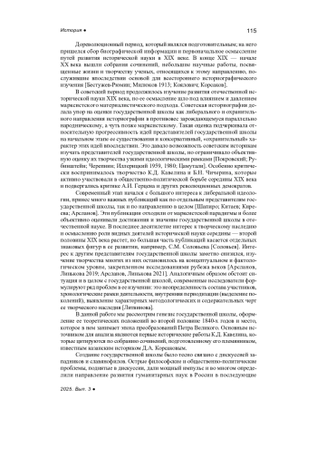 Статья: ЭПОХА ПЕТРА I В ТЕОРЕТИЧЕСКИХ ПОСТРОЕНИЯХ ГОСУДАРСТВЕННОЙ ШКОЛЫ В ПЕРИОД ЕЕ ФОРМИРОВАНИЯ (НА МАТЕРИАЛЕ РАБОТ К. Д. КАВЕЛИНА) (2025)