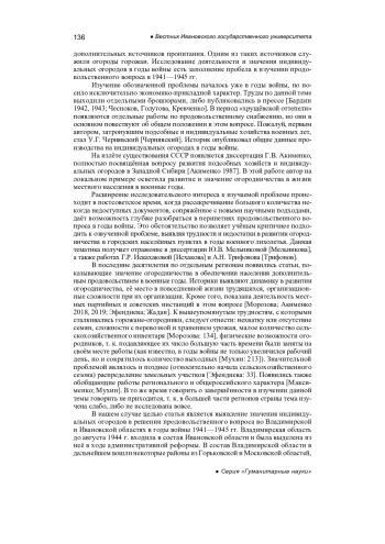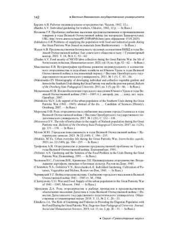 Maksimenko EV Historiography of developing individual and collective vegetable gardens and farms in the Southern Urals during the Great Patriotic war and in the post-war period, Bulletin of the Orenburg State Pedagogical University, 2013, no. 1 (5), pp. 83-86. - In Russ.