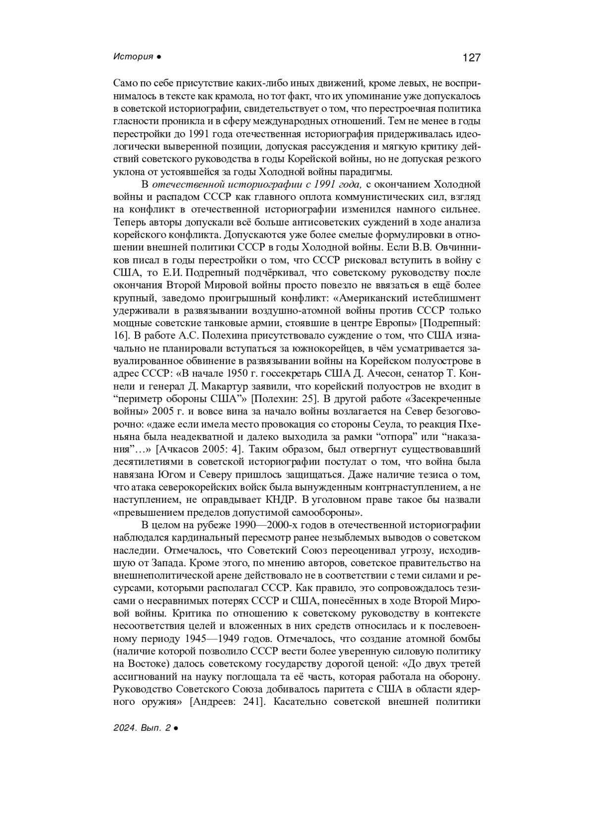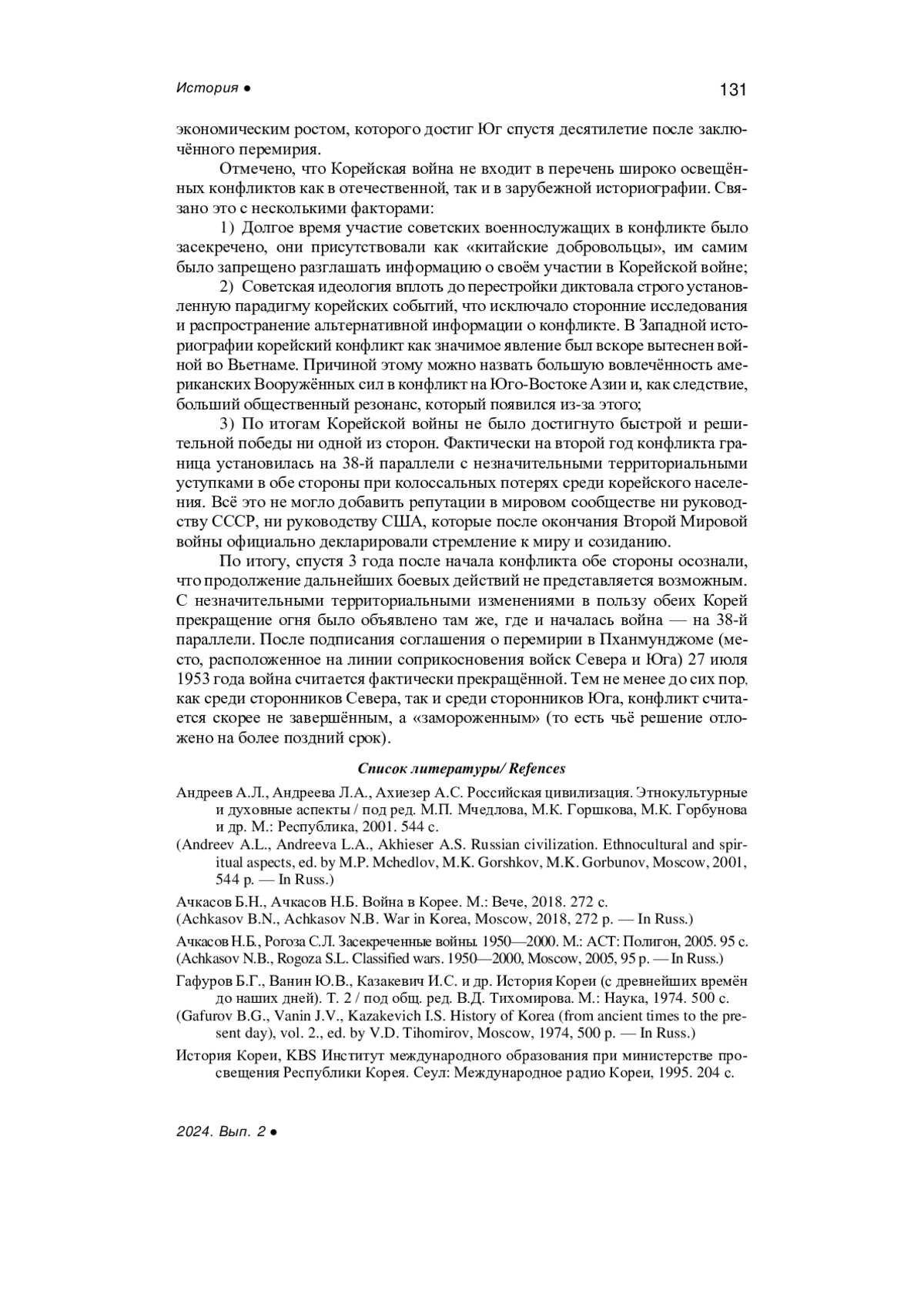 Статья: ПРЕДЫСТОРИЯ И РАЗВИТИЕ КОНФЛИКТА В КОРЕЕ 1950-1953 ГГ. В ОТЕЧЕСТВЕННОЙ И ЗАРУБЕЖНОЙ ИСТОРИОГРАФИИ (2024)