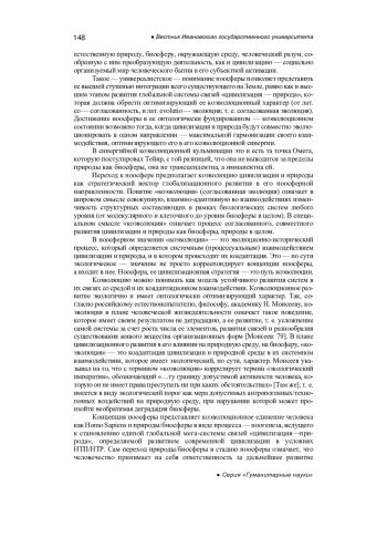 В статье с концептуальной позиции цивилизационного подхода анализируется концепция ноосферы как перспективного ориентира, стратегии и виртуального кода глобализирующегося развития современной цивилизации в условиях модернизации на (научно-технической) основе НТП и НТР. Глобализация рассмотрена как возможность и предпосылка ноосферной трансформации современной цивилизации. Предложена конкретизирующая цивилизационное понимание ноосферы коэволюционная ее экспликация