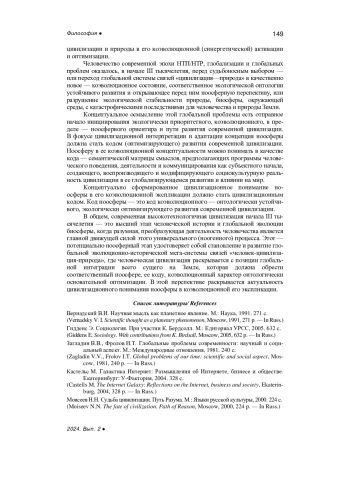 1. Вернадский В.И. Научная мысль как планетное явление. М.: Наука, 1991. 271 с. EDN: KBQMGG