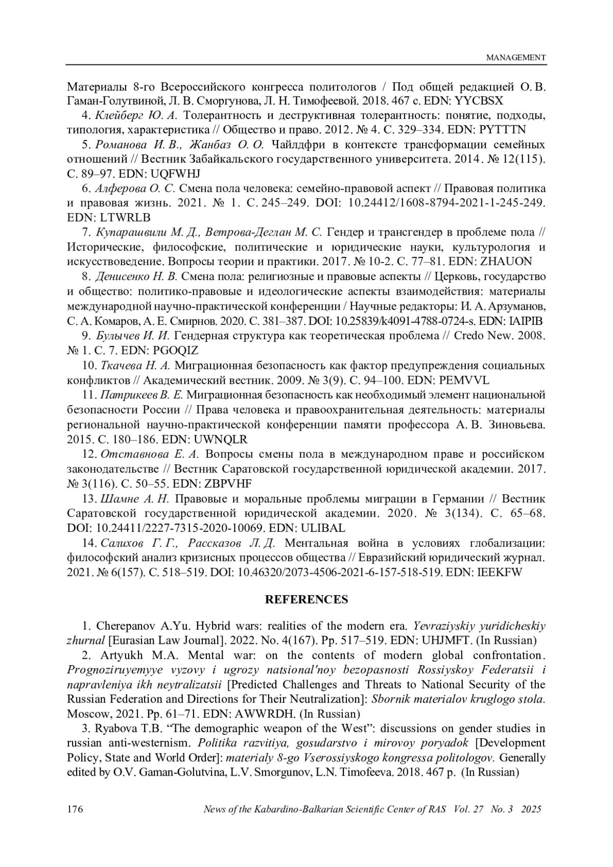 3. Рябова Т. Б. “Демографическое оружие Запада”: дискуссии о гендерных исследованиях в российском антизападничестве // Политика развития, государство и мировой порядок. MANAGEMENT.