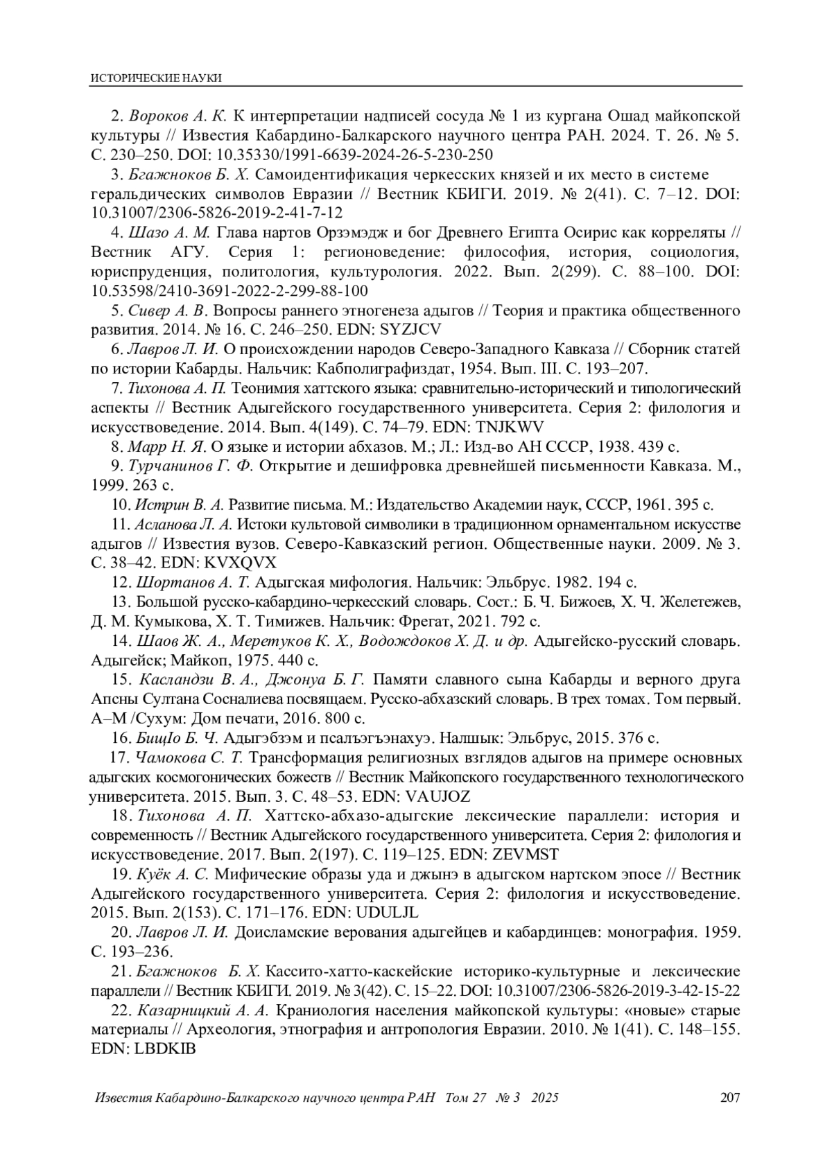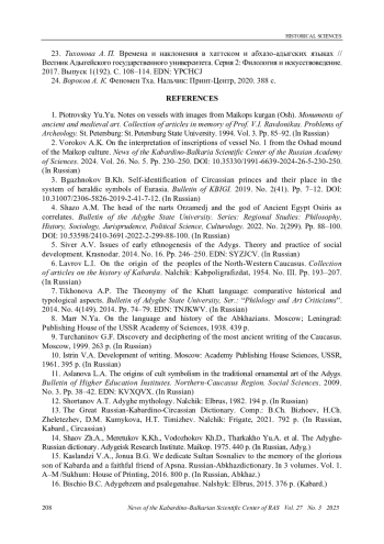 21. Бгажноков Б. Х. Кассито-хатто-каскейские историко-культурные и лексические параллели // Вестник КБИГИ. 2019. № 3(42). С. 15-22. DOI: 10.31007/2306-5826-2019-3-42-15-22