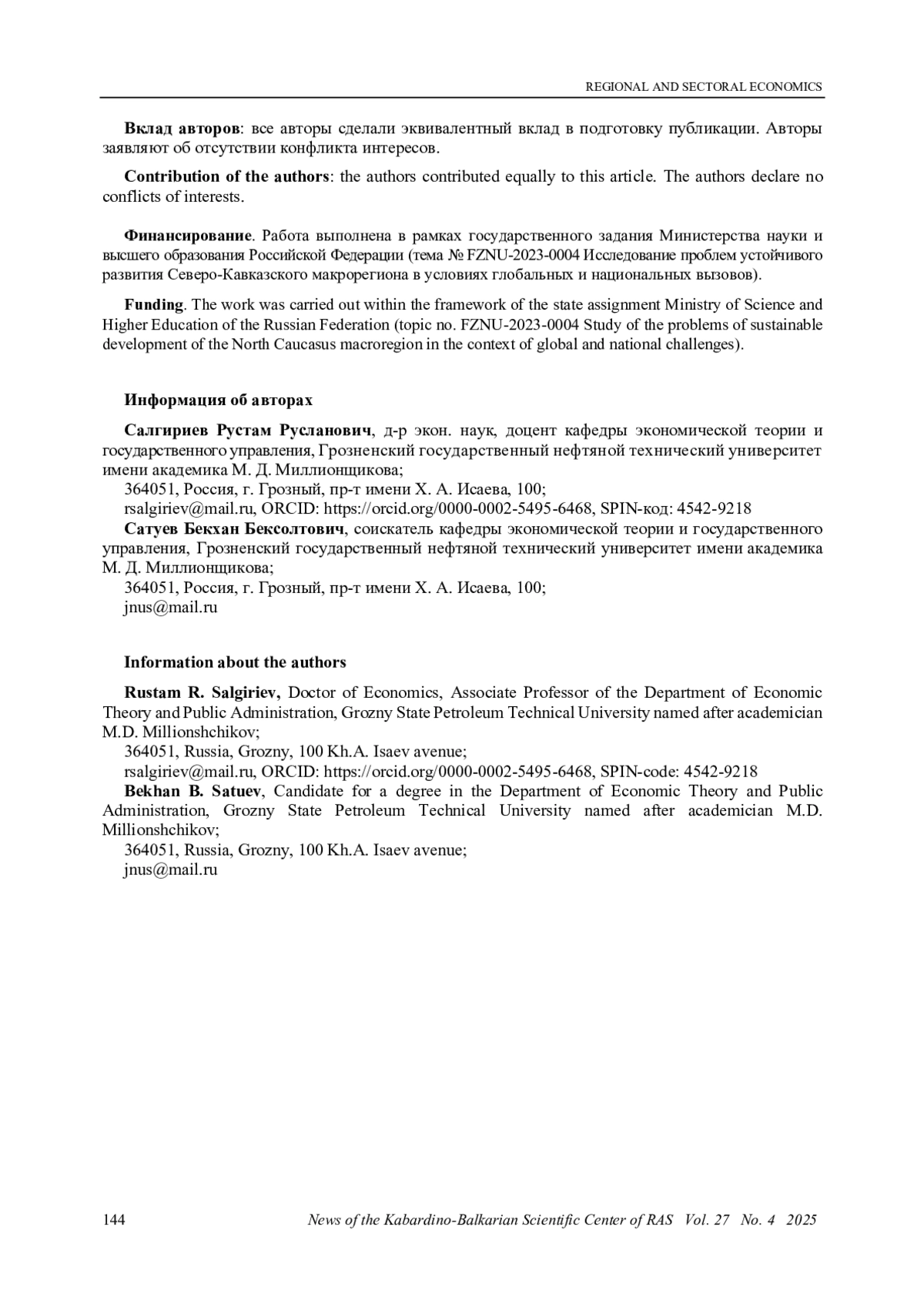 Выводы. Результаты исследования обладают высокой прикладной значимостью и могут быть использованы при разработке региональной социально-экономической политики, формировании инструментов стратегического планирования и принятия управленческих решений в условиях макроэкономической нестабильности. Построенная кластерная модель позволяет учитывать структурные различия между регионами, а выявленные взаимосвязи между показателями - формировать более точные прогнозы устойчивости. Методологический подход, использованный в исследовании, может быть масштабирован на другие группы субъектов и адаптирован к различным временным периодам для мониторинга динамики устойчивости.