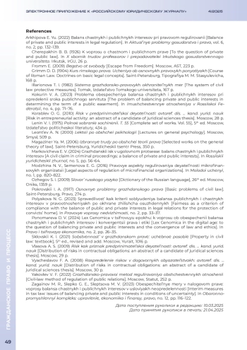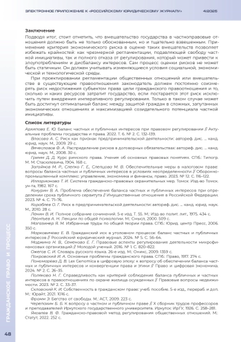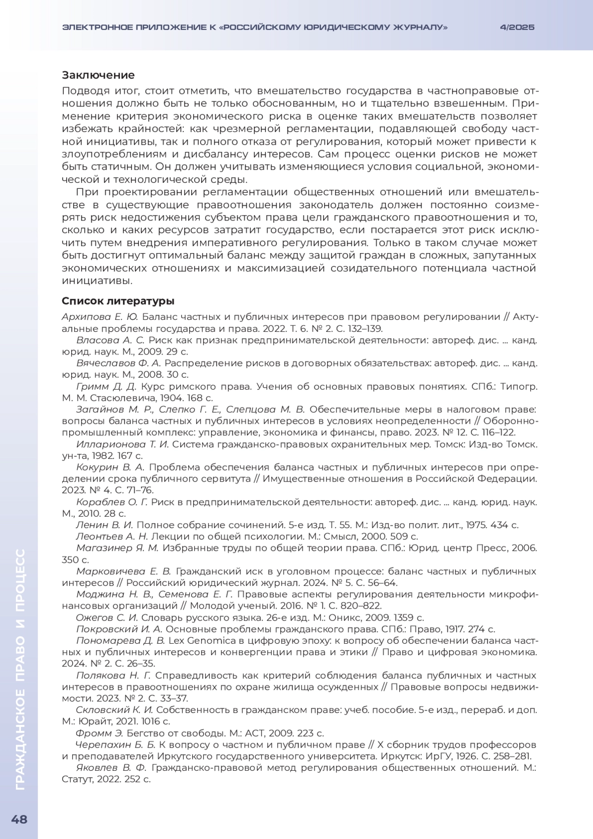 1. Архипова Е. Ю. Баланс частных и публичных интересов при правовом регулировании // Актуальные проблемы государства и права. 2022. Т. 6. № 2. С. 132-139. EDN: TQGOGC