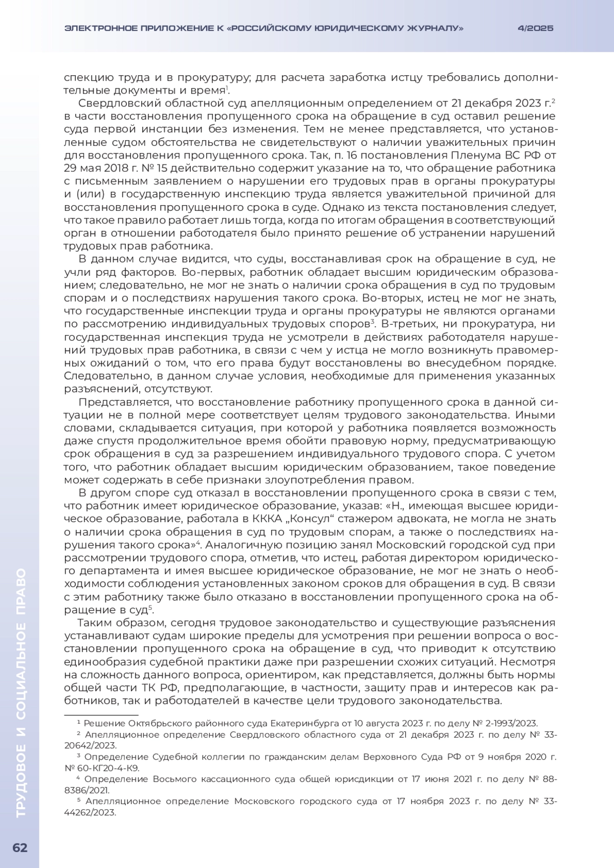 5. Комков С. А. Исковая давность в трудовом праве (теория и практика правоприменения) // Сибирский юридический вестник. 2021. № 2. С. 37-41. EDN: JYGEAG