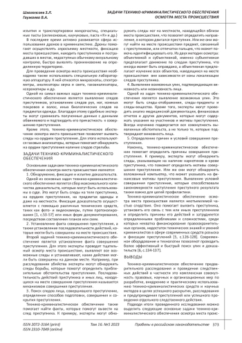 Статья: ЗАДАЧИ ТЕХНИКО-КРИМИНАЛИСТИЧЕСКОГО ОБЕСПЕЧЕНИЯ ОСМОТРА МЕСТА ПРОИСШЕСТВИЯ (2023)