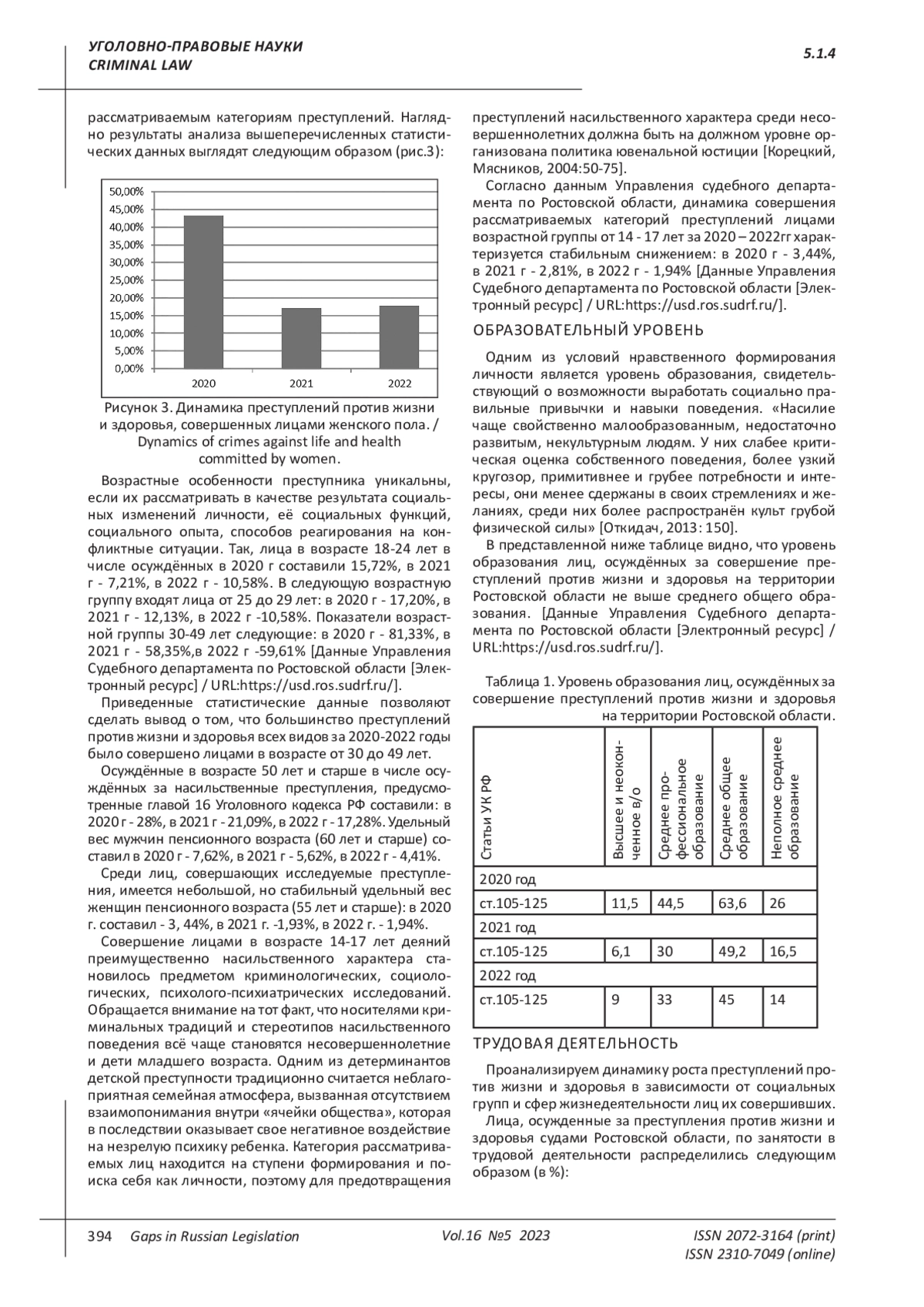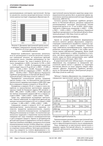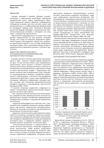 Статья: ЛИЧНОСТЬ ПРЕСТУПНИКА КАК ЭЛЕМЕНТ КРИМИНАЛИСТИЧЕСКОЙ ХАРАКТЕРИСТИКИ ПРЕСТУПЛЕНИЙ ПРОТИВ ЖИЗНИ И ЗДОРОВЬЯ (2023)