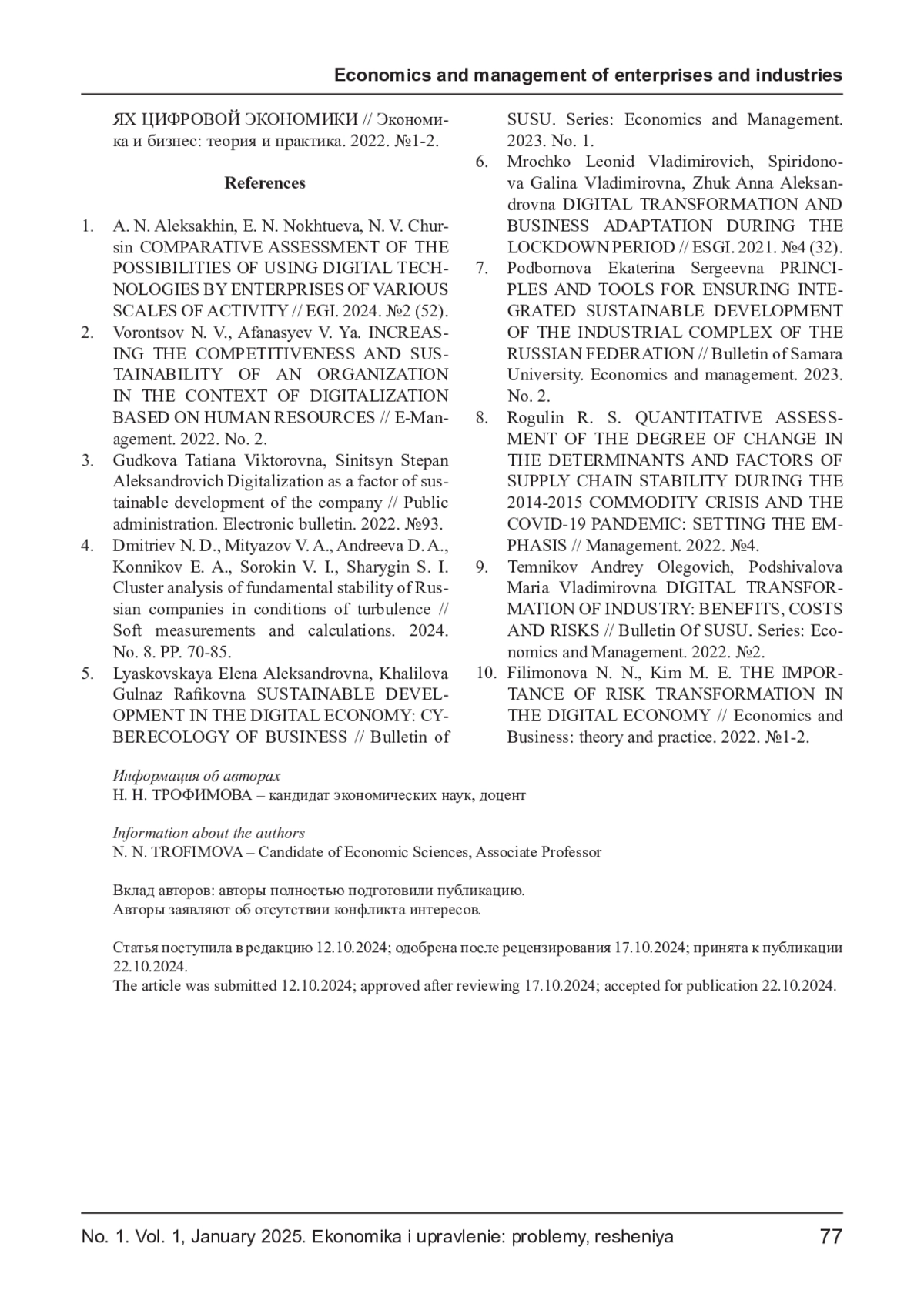 5. Лясковская Елена Александровна, Халилова Гульназ Рафиковна УСТОЙЧИВОЕ РАЗВИТИЕ В ЦИФРОВОЙ ЭКОНОМИКЕ: КИБЕРЭКОЛОГИЯ БИЗНЕСА // Вестник ЮУрГУ. Серия: Экономика и менеджмент. 2023. №1.