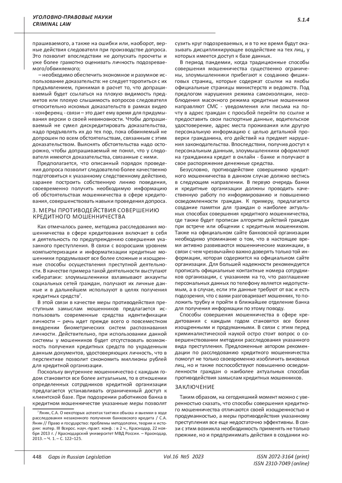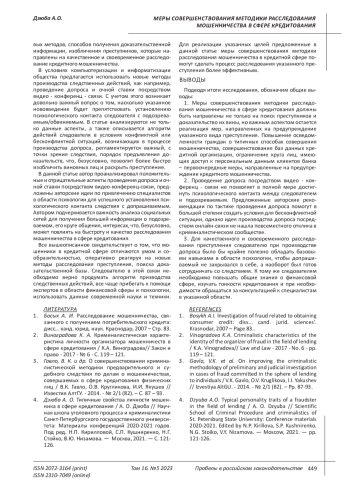 Статья: МЕРЫ СОВЕРШЕНСТВОВАНИЯ МЕТОДИКИ РАССЛЕДОВАНИЯ МОШЕННИЧЕСТВА В СФЕРЕ КРЕДИТОВАНИЯ (2023)