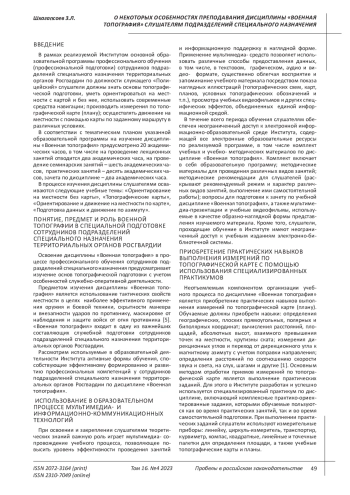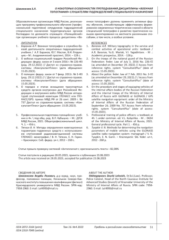Статья: О НЕКОТОРЫХ ОСОБЕННОСТЯХ ПРЕПОДАВАНИЯ ДИСЦИПЛИНЫ "ВОЕННАЯ ТОПОГРАФИЯ" СЛУШАТЕЛЯМ, ОБУЧАЮЩИМСЯ ПО ОСНОВНОЙ ПРОГРАММЕ ПРОФЕССИОНАЛЬНОГО ОБУЧЕНИЯ (ПРОФЕССИОНАЛЬНОЙ ПОДГОТОВКИ) СОТРУДНИКОВ ПОДРАЗДЕЛЕНИЙ СПЕЦИАЛЬНОГО НАЗНАЧЕНИЯ ТЕРРИТОРИАЛЬНЫХ ОРГАНОВ РОСГВАРДИИ ПО ДОЛЖНОСТИ СЛУЖАЩЕГО "ПОЛИЦЕЙСКИЙ" (2023)