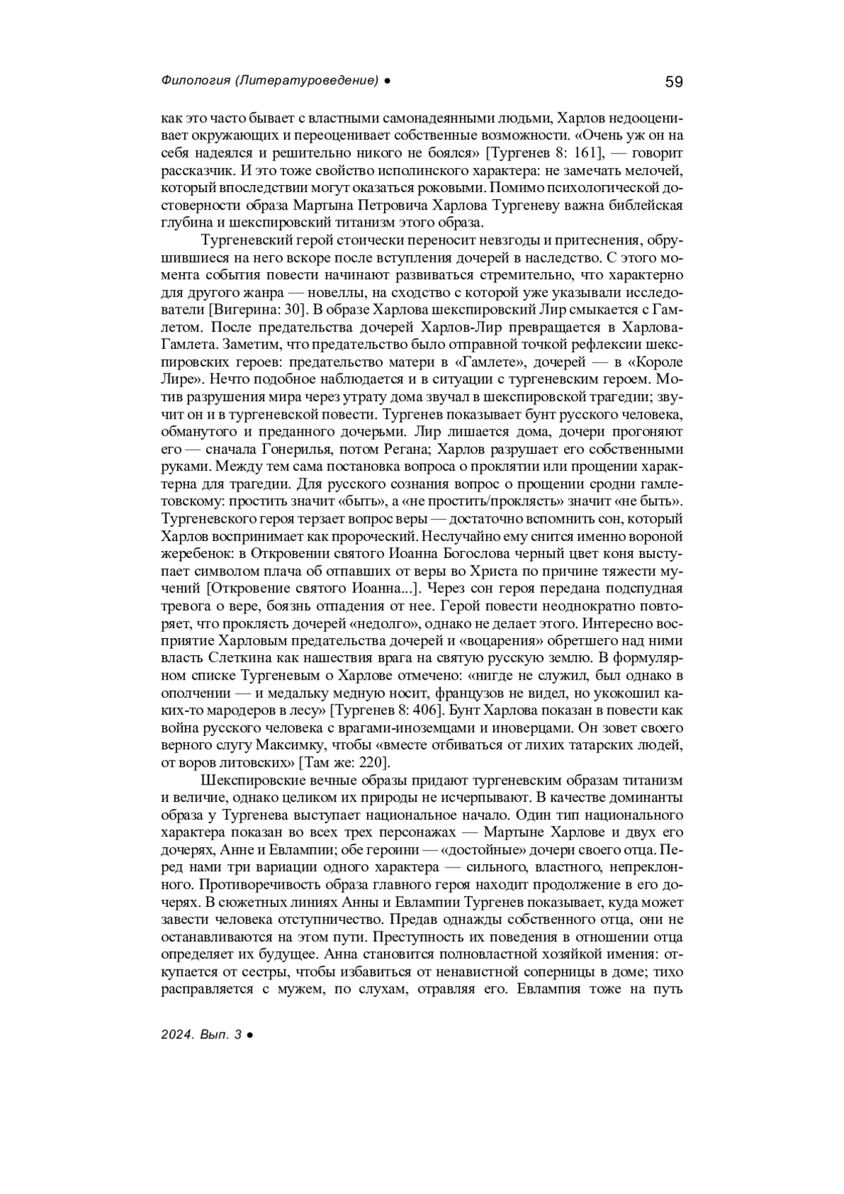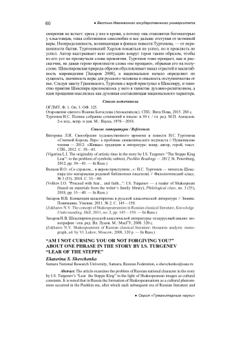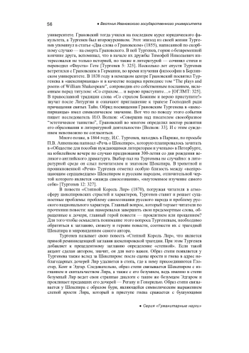 Vigerina L.I. The originality of artistic time in the story by I.S. Turgenev “The Steppe King Lear”: to the problem of symbolic subtext, Pushkin Readings - 2012, St. Petersburg, 2012, pp. 30-43. - In Russ. EDN: SIOHJD