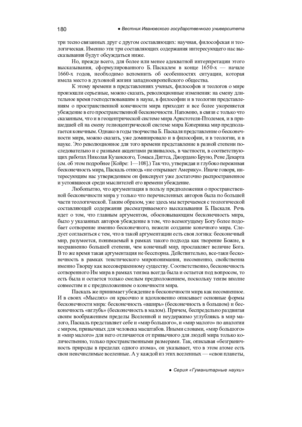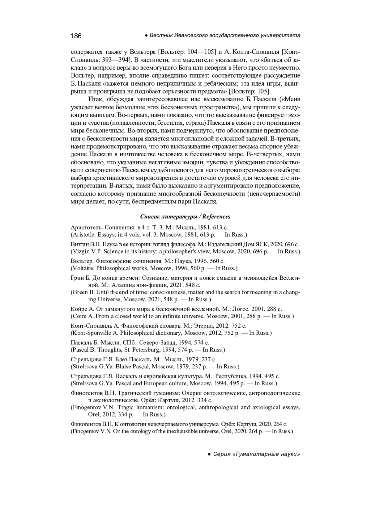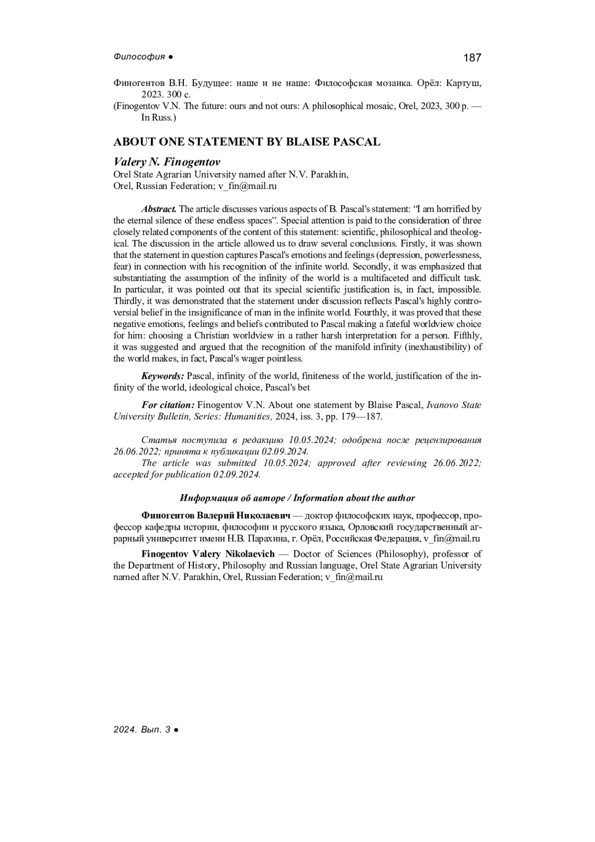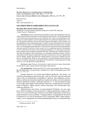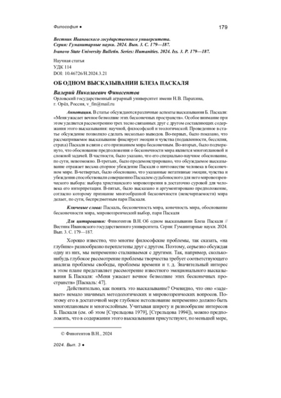 ФИНОГЕНТОВ В. Н. ОБ ОДНОМ ВЫСКАЗЫВАНИИ БЛЕЗА ПАСКАЛЯ // ВЕСТНИК ИВАНОВСКОГО ГОСУДАРСТВЕННОГО УНИВЕРСИТЕТА. СЕРИЯ: ГУМАНИТАРНЫЕ НАУКИ. 2024. № 3