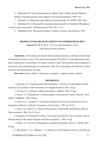 13. Ivanov O. P., Vysikailo F. I. Cumulative-Dissipative Processes and Structures (New in Synergetics). Moscow: Collection “Synergetics of Geosystems”, 2007. pp. 36-42.