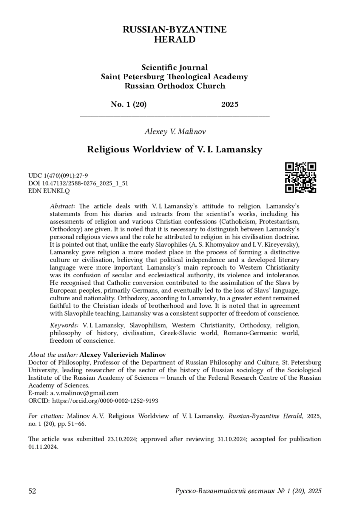 18. Малинов А. В. “Римская идея” в цивилизационной концепции В. И. Ламанского // Вопросы философии. 2023. № 2. С. 155-166.