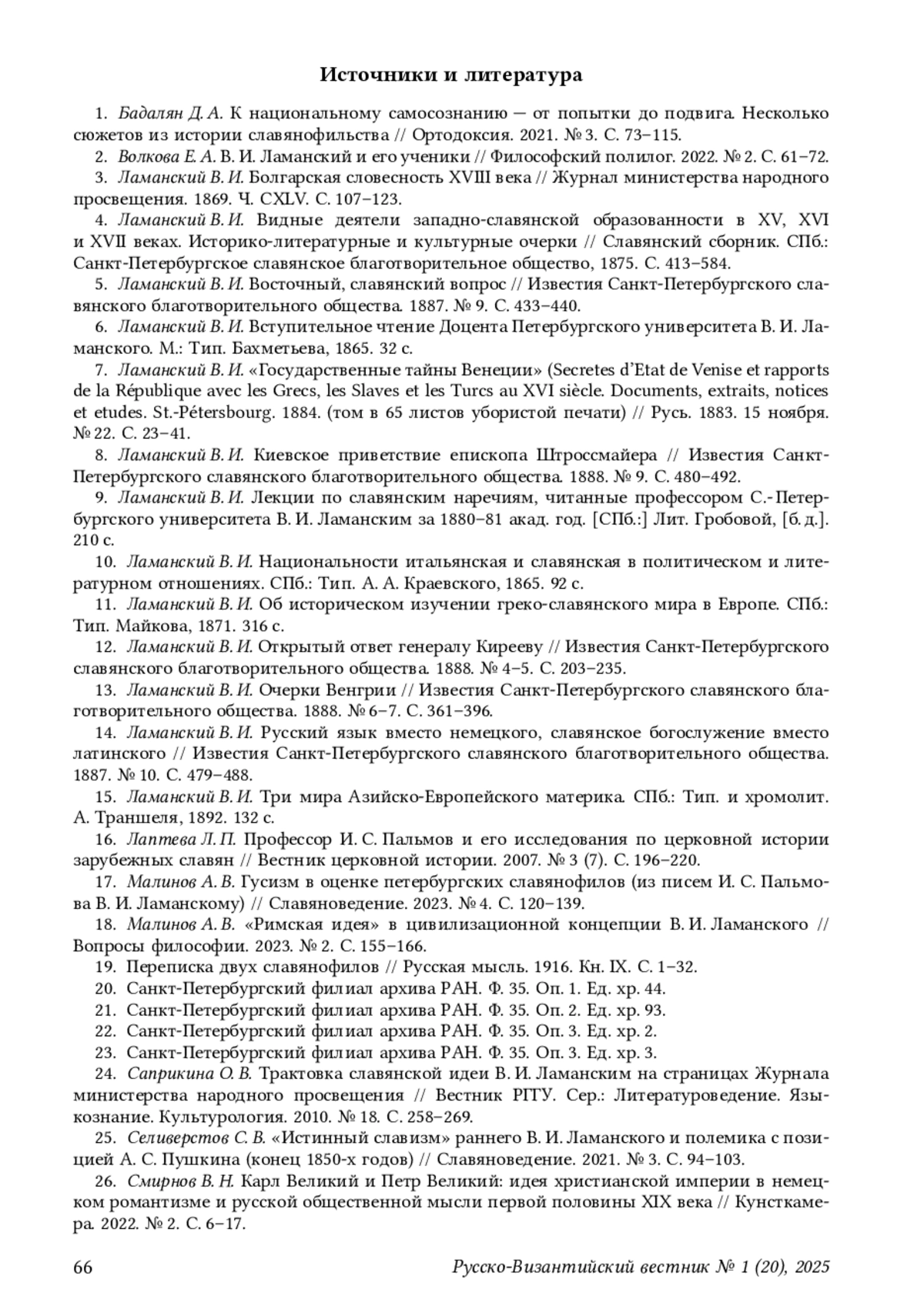 2. Волкова Е. А. В. И. Ламанский и его ученики // Философский полилог. 2022. № 2. С. 61-72. EDN: TXJSIW