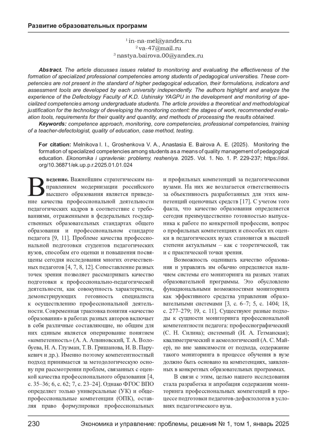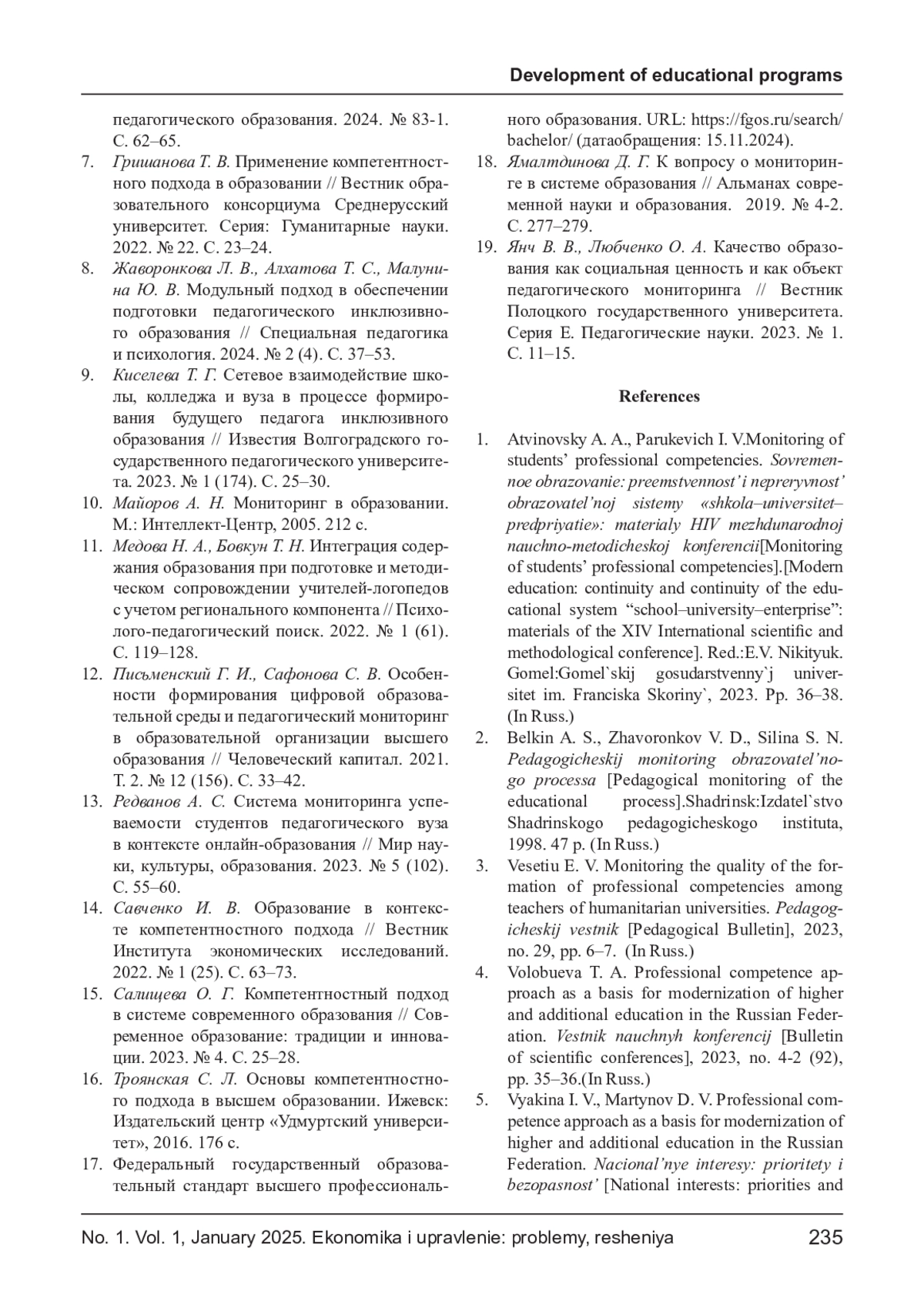 3. Везетиу Е. В. Мониторинг качества формирования профессиональных компетенций у преподавателей гуманитарных вузов // Педагогический вестник. 2023. № 29. С. 6-7. EDN: MTDXUE