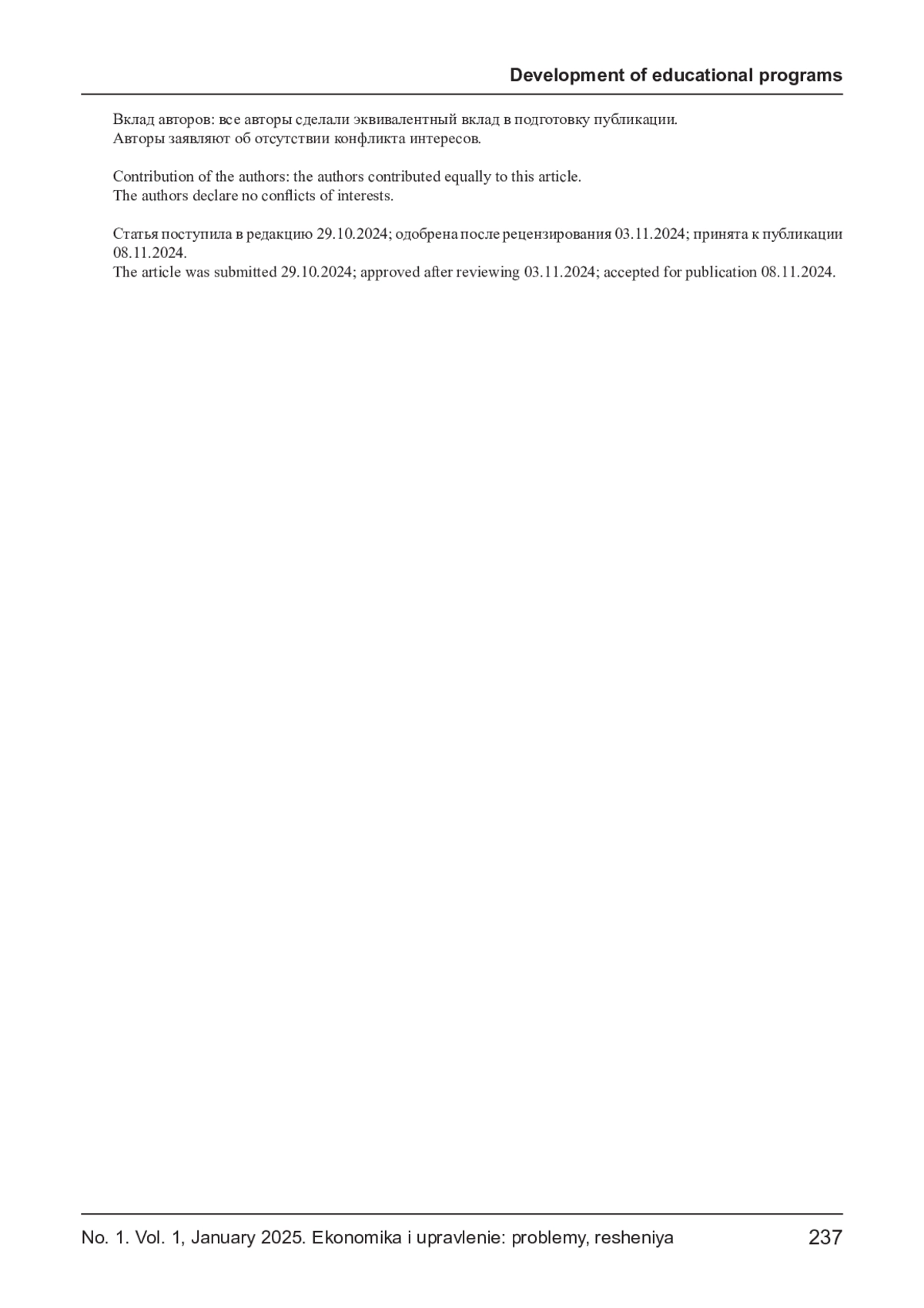 6. Глузман Н. А. Профессиональная компетентность как фактор способности к трудовой деятельности // Проблемы современного педагогического образования. 2024. № 83-1. С. 62-65. EDN: TXATEU