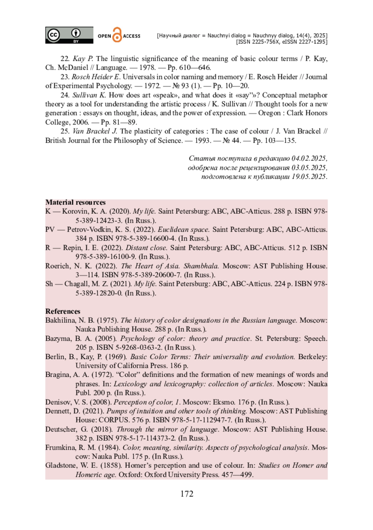 22. Kay P. The linguistic significance of the meaning of basic colour terms / P. Kay, Ch. McDaniel // Language. - 1978. - Pp. 610-646.