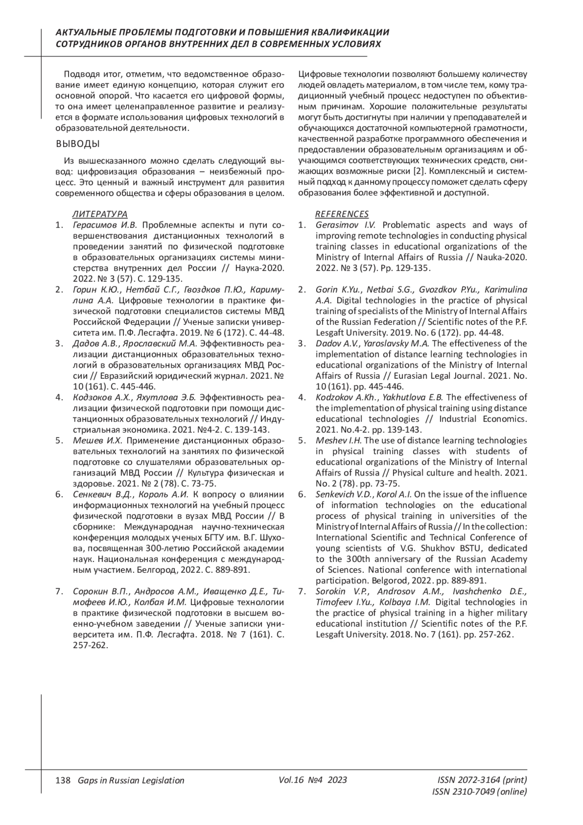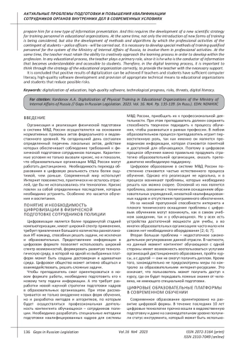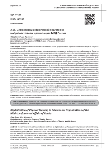 Статья: ЦИФРОВИЗАЦИЯ ФИЗИЧЕСКОЙ ПОДГОТОВКИ В ОБРАЗОВАТЕЛЬНЫХ ОРГАНИЗАЦИЯХ МВД РОССИИ (2023)