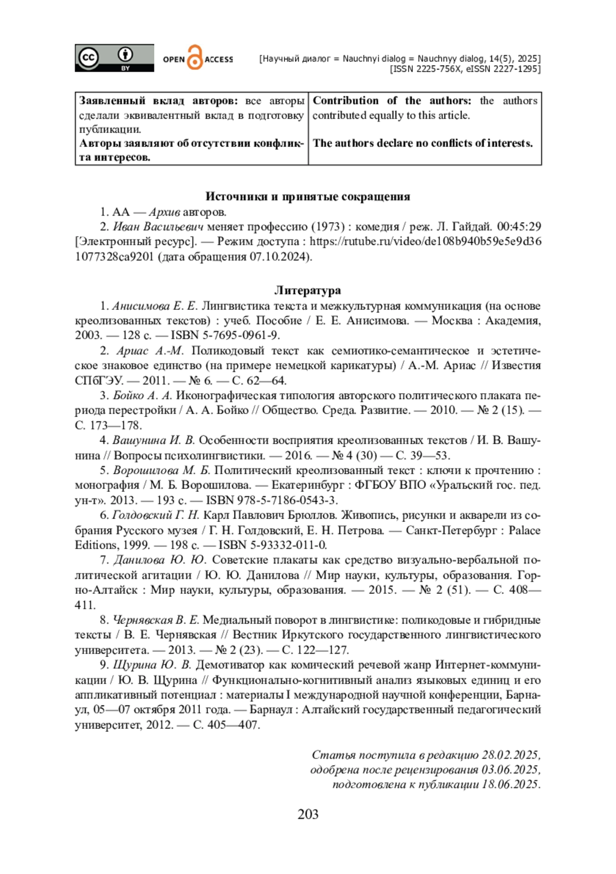 5. Ворошилова М. Б. Политический креолизованный текст : ключи к прочтению : монография / М. Б. Ворошилова. - Екатеринбург : ФГБОУ ВПО «Уральский гос. пед. ун-т». 2013. - 193 с. - ISBN 978-5-7186-0543-3.