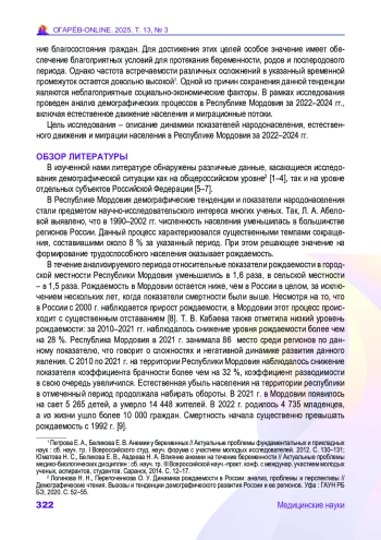 9. Кабаева Т. В. Социально-демографическая динамика в Республике Мордовия // Телескоп: журнал социологических и маркетинговых исследований. 2024. № 1. С. 148-152. DOI: 10.24412/1994-3776-2024-1-148-152